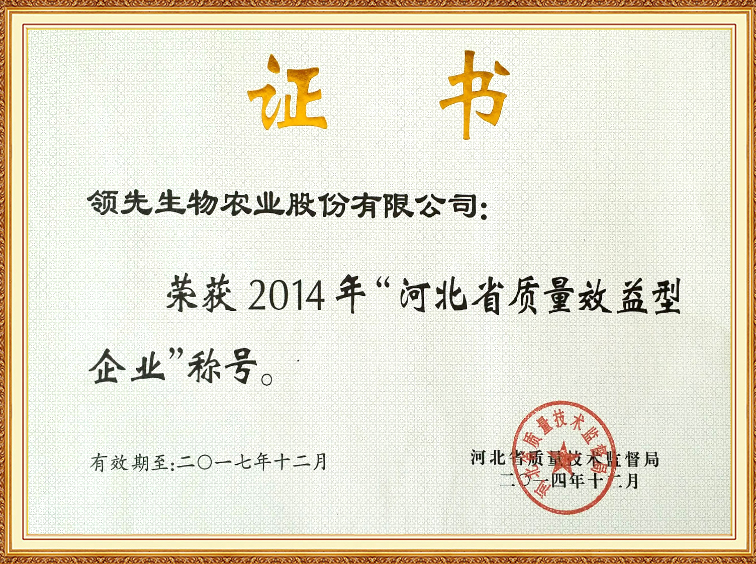 河北省質(zhì)量效益型企業(yè)證書
