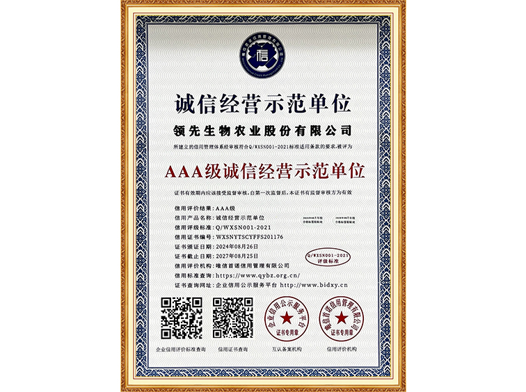 AAA級誠信經(jīng)營示范單位