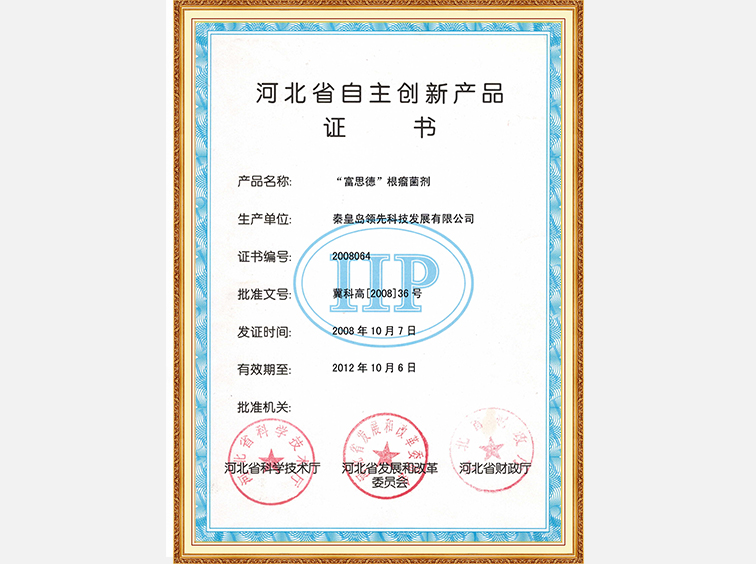富思德牌微生物菌劑—河北省名牌產(chǎn)品證書(shū)
